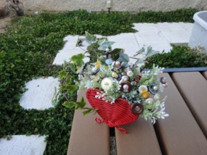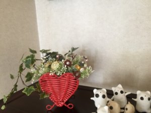庭に生えているアイビーも刺してみる(水を入れないから今だけの飾り)♪