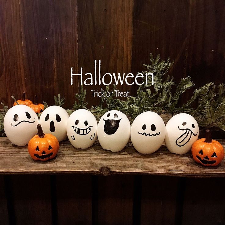 「毎年恒例 卵の殻のおばけちゃん♡ 卵の殻に油性のマジックで 顔を描くだけ(。 >艸