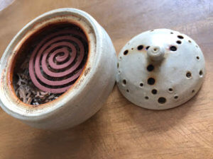 京都で買ってきたちょっと高級感のあるお香を来客のある日の朝、玄関で焚いています。